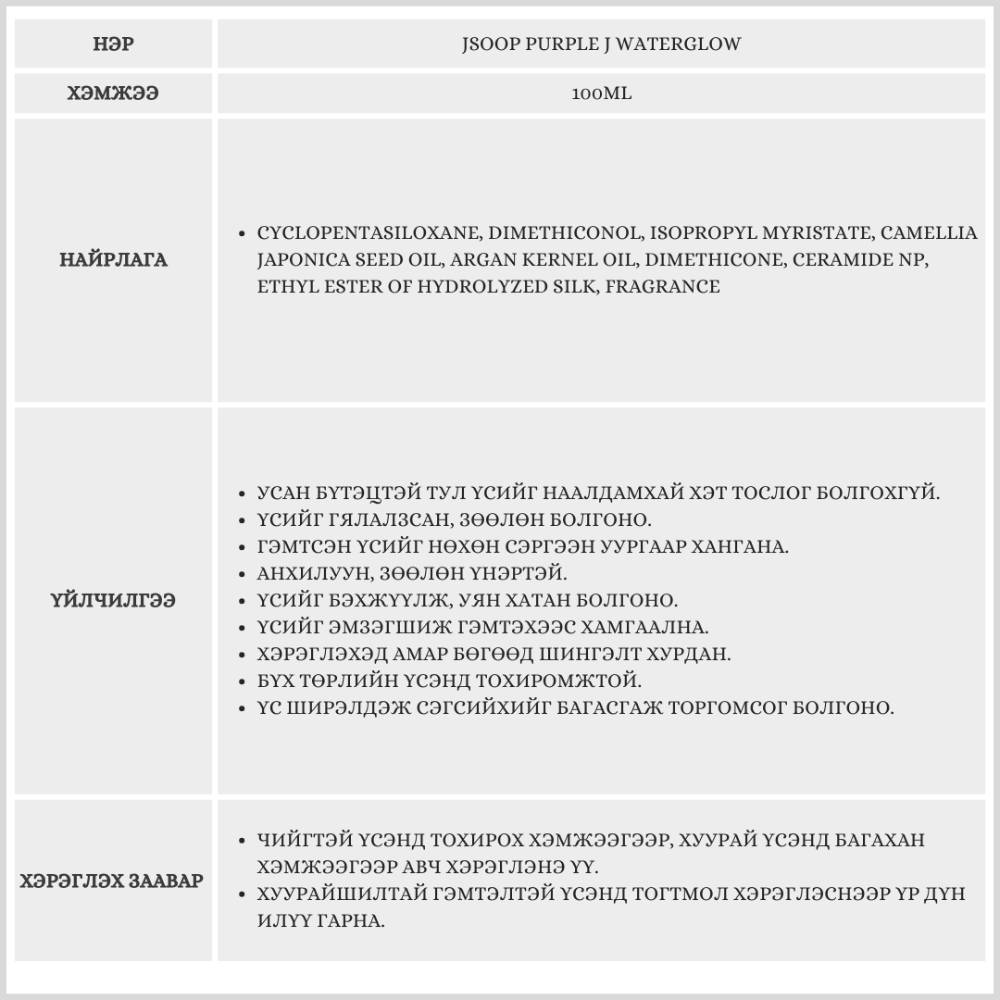 JSOOP PURPLE J WATERGLOW / ҮСНИЙ ТЭЖЭЭЛ /