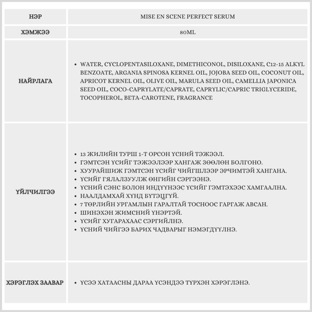 MISE EN SCENE PERFECT SERUM /ҮСНИЙ ТЭЖЭЭЛ /