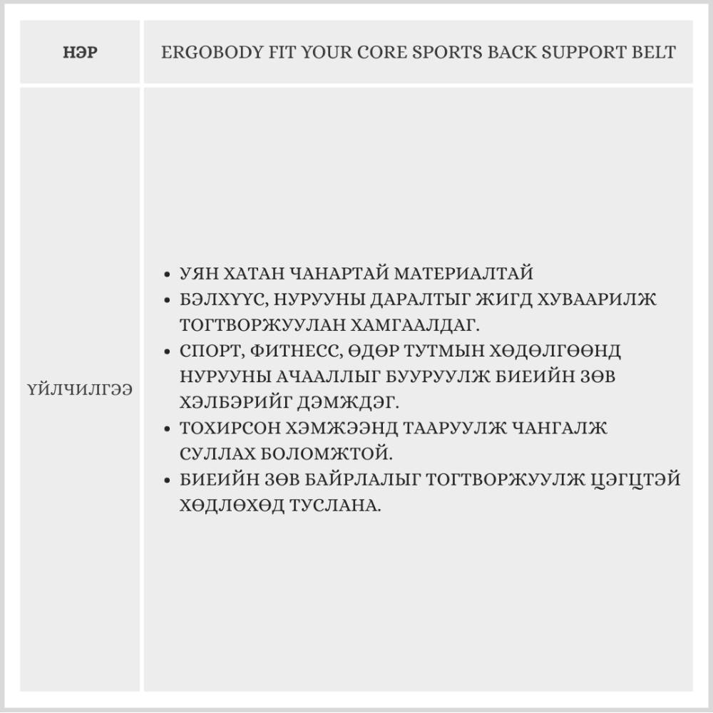 ERGOBODY FIT YOUR CORE SPORTS BACK SUPPORT BELT / ХАМГААЛАЛТЫН БҮС /