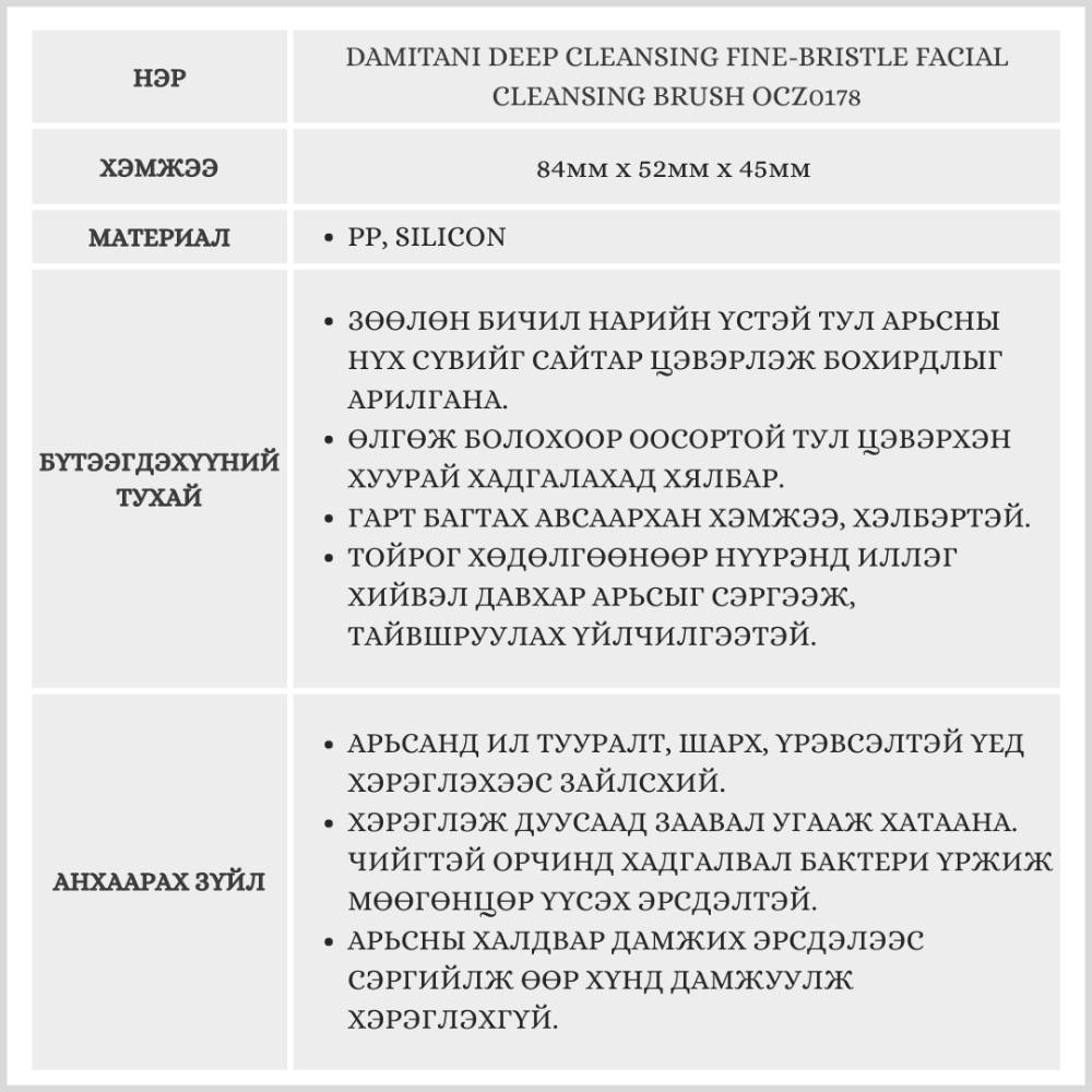 Damitani Deep Cleansing Fine-Bristle Facial Cleansing Brush OCZ0178, 1ш /Нүүр угаагч сойз/