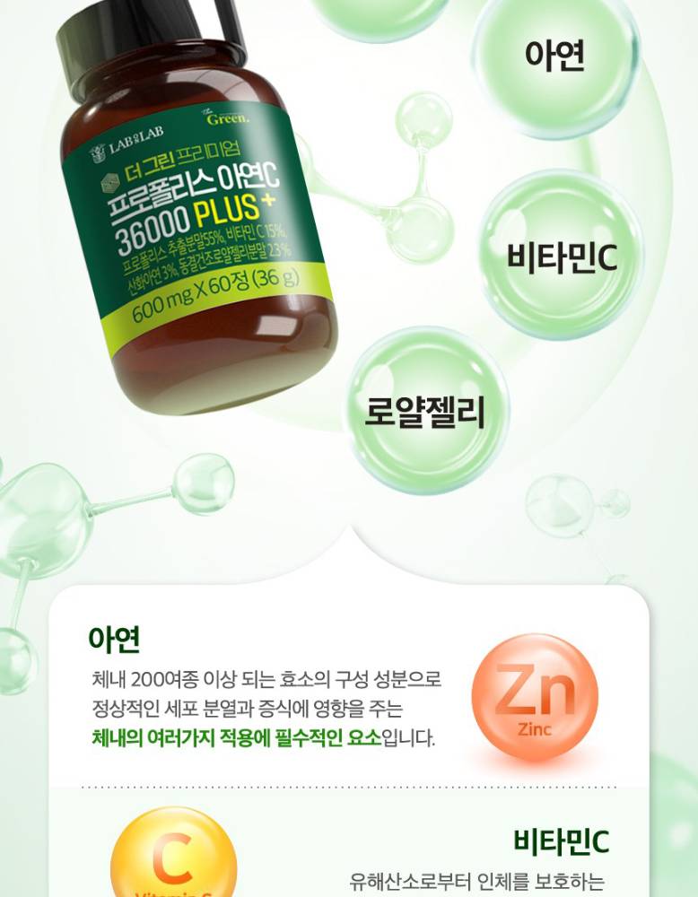 Lab on Lab The Green Premium Propolis Zinc C 36000 Plus 60 tablets, 1 unit (Калци/Магни/Цайр)