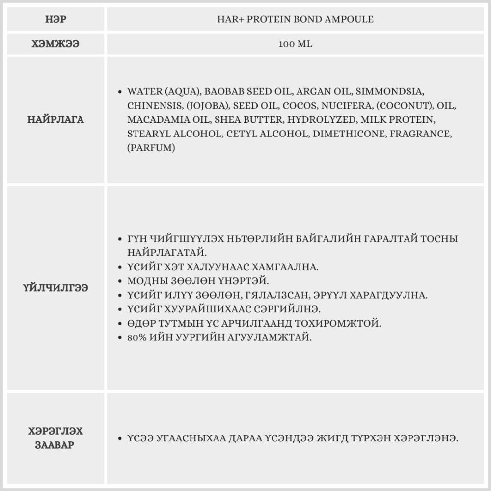 HAR+ PROTEIN BOND AMPOULE / ҮСНИЙ ТЭЖЭЭЛ /