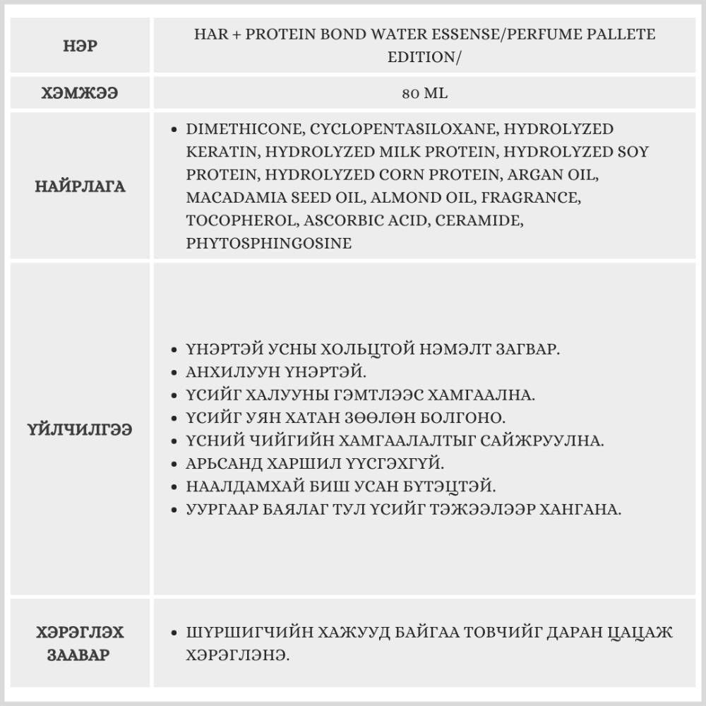 HAR + PROTEIN BOND WATER ESSENSE/PERFUME PALLETE EDITION/ ҮСНИЙ ТЭЖЭЭЛ /
