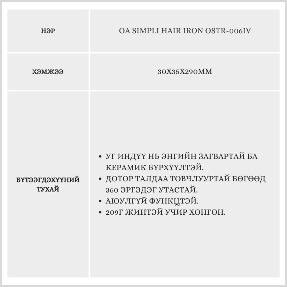 Oa Simpli Hair Iron OSTR-006IV /Үсний индүү/