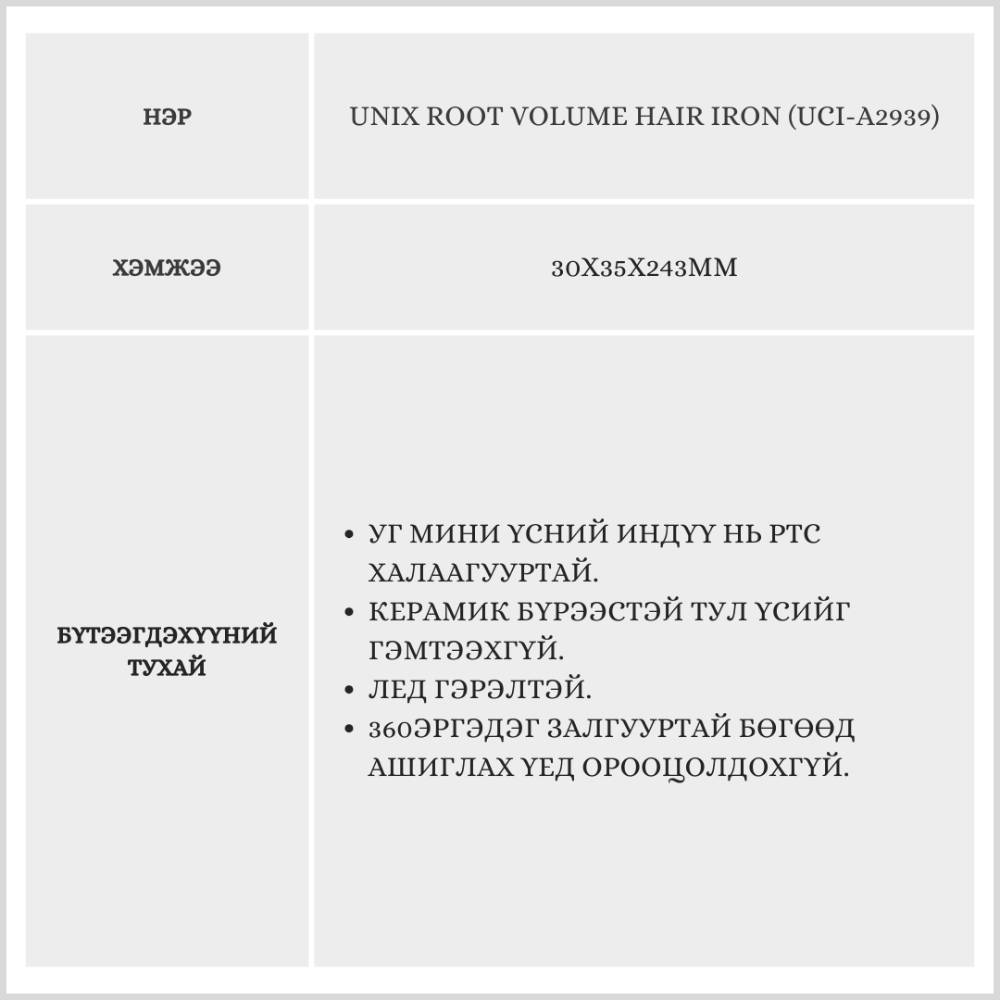 UNIX Root Volume Hair Iron (UCI-A2939) /Мини үсний индүү/