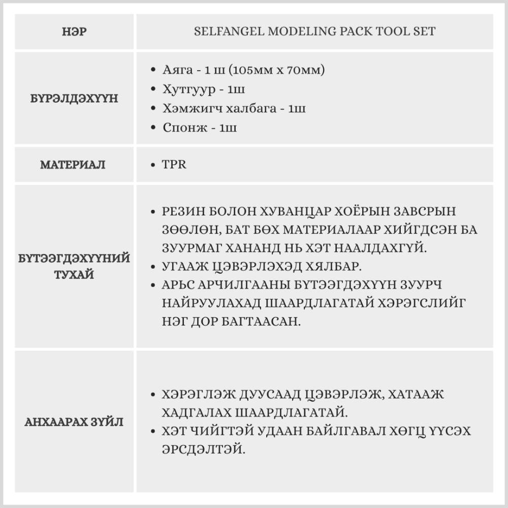 SelfAngel Modeling Pack Tool Set, 1 багц /Зуурдаг маскны аяга/