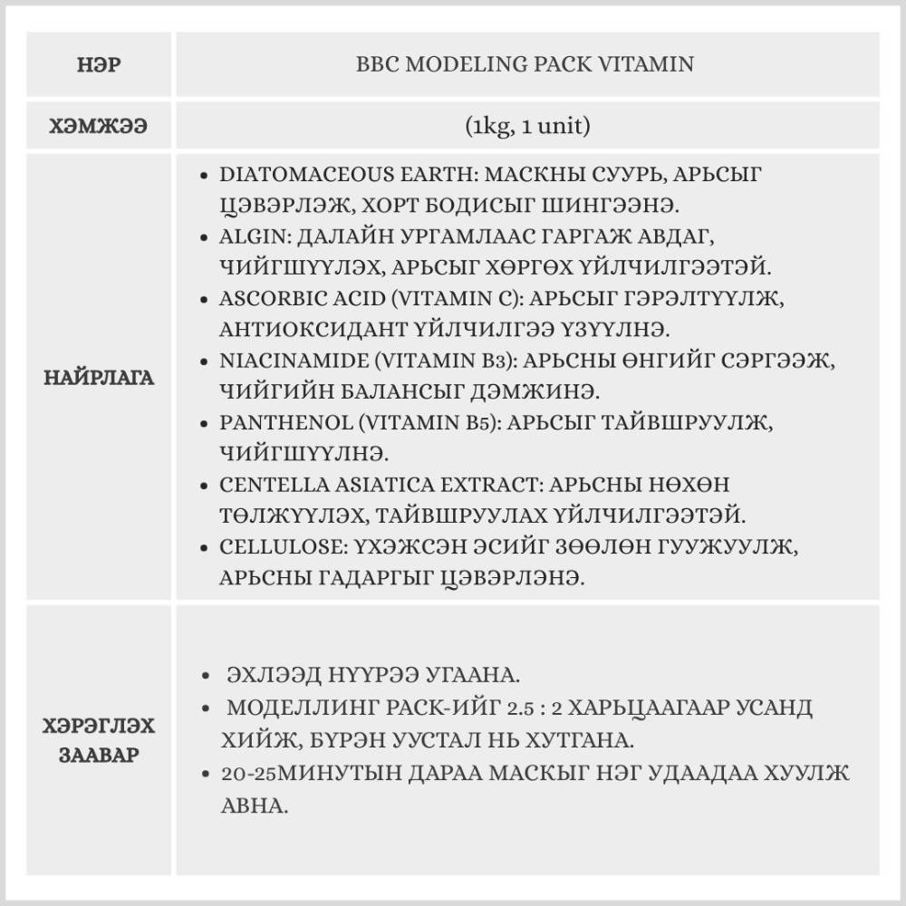 BBC Modeling Pack Vitamin 1kg, 1 unit (зуурдаг маск)