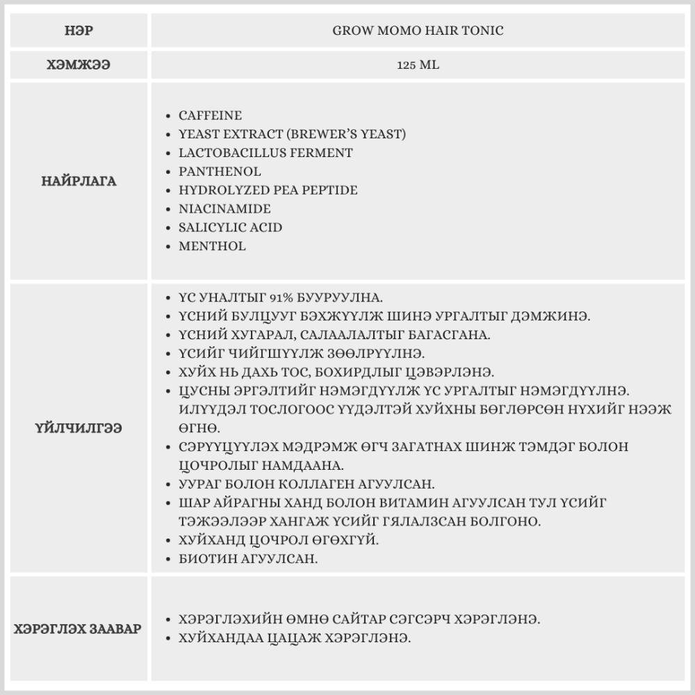GROW MOMO HAIR TONIC / ҮСНИЙ ТОНИК /