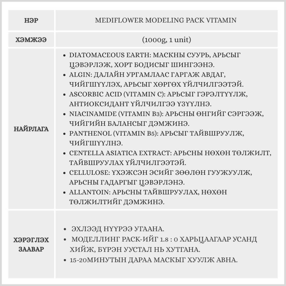 Mediflower Modeling Pack Vitamin 1000g, 1 unit (зуурдаг маск)