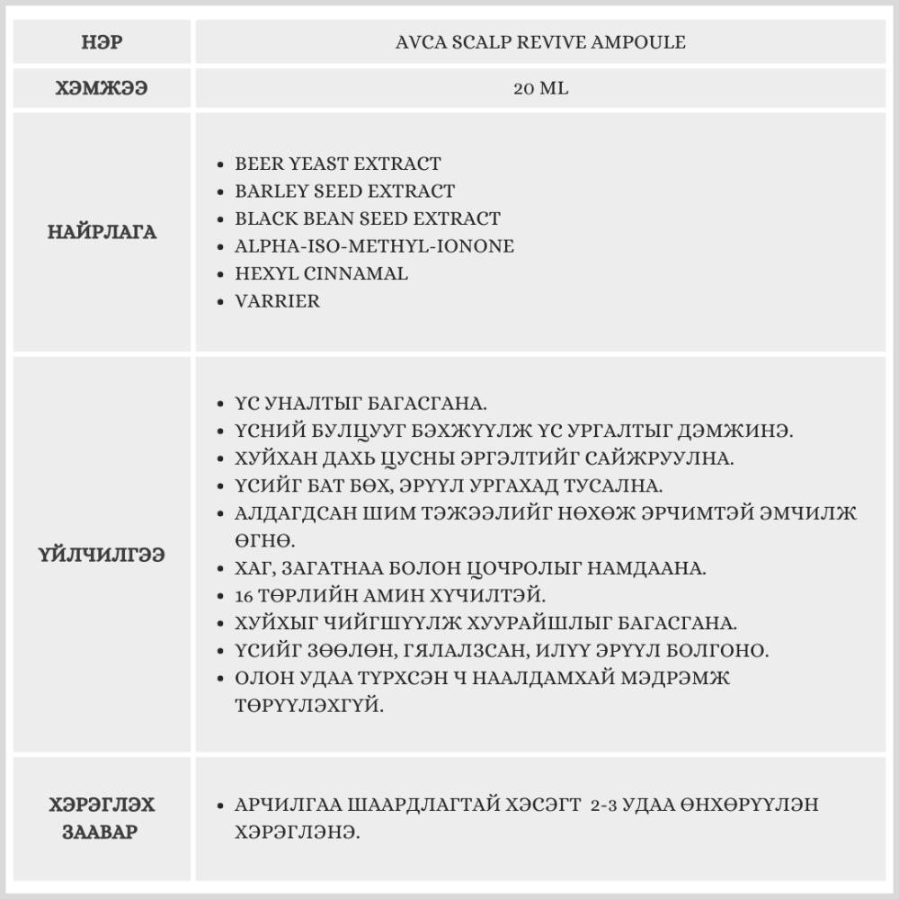 AVCA SCALP REVIVE AMPOULE / ҮСНИЙ АМПУЛЬ /