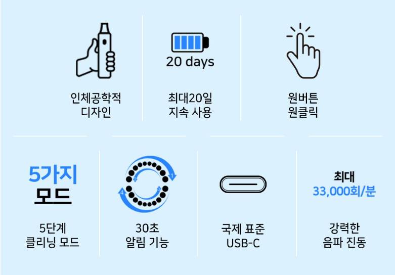5 төрлийн хүчний горимтой шүд буйлыг үр дүнтэй цэвэрлэх автомат шүдний сойз. Шүдэнд төгс тохирох W хэлбэрийн сойзны толгой 5ш дагалдах тул удаан хэрэглээтэй. USB-C цэнэглэгчээр цэнэглэх бөгөөд нэг бүтэн цэнэгээрээ 20 цаг ажиллана.