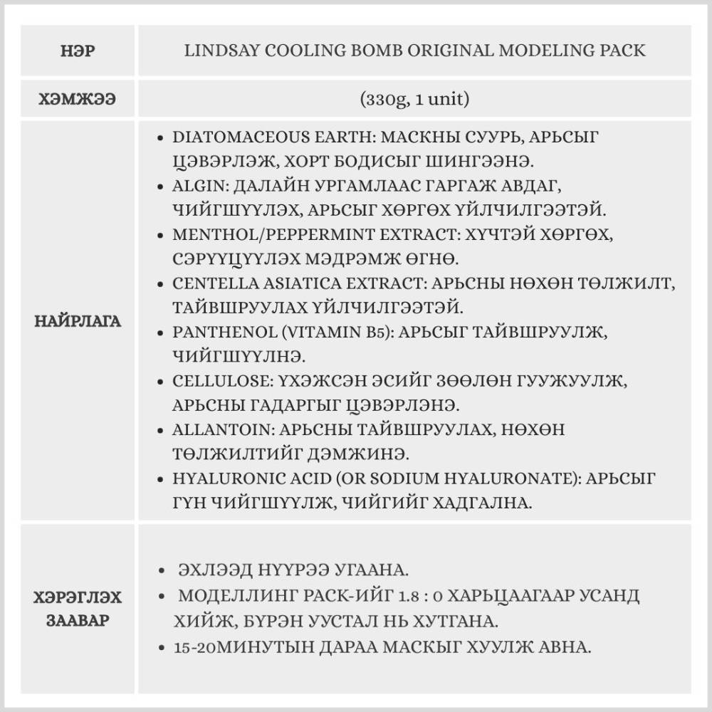 Lindsay Cooling Bomb Original Modeling Pack 330g, 1 unit (зуурдаг маск)