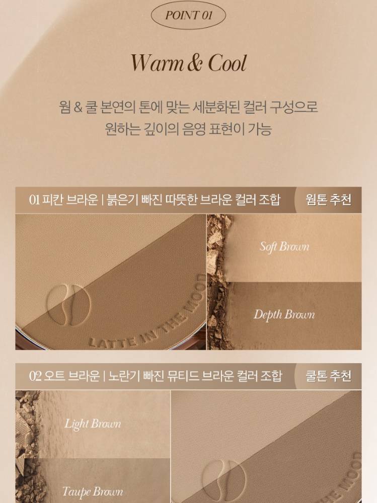 Уг сүүдэрт зөөлөн түрхэгдэх багс дагалдах ба байгалийн мэт сүүдрийг гаргаж өгдгөөрөө онцлог. Өнгөний хувьд гарц сайн бөгөөд дулаан болон хүйтэн бүх төрлийн арьсны өнгөнд зохицно.