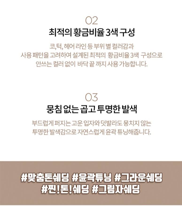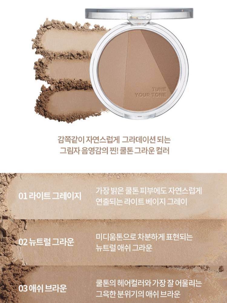 Энэхүү сүүдэр нь хэт улаан эсвэл шар биш арьсны өнгөнд тохирсон байгалийн саарал бор өнгөтэй. Түрхэхэд зөөлөн багс нь таны нүүр будалтыг төгс болгоно.