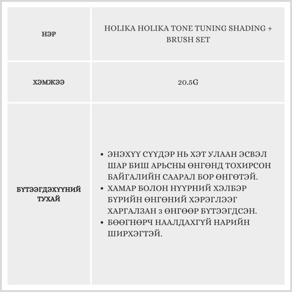 Holika Holika Tone Tuning Shading + Brush Set, 02 Warm Ground, 1ea /Сүүдэр/