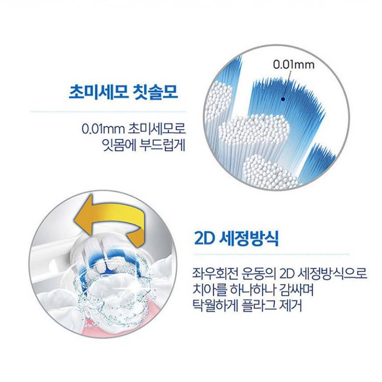 Шүдний өнгөрийг үр дүнтэй арилгах эргэлтэт технологитой автомат шүдний сойз. Х хэлбэрийн 0.01 мм нимгэн үстэй тул шүдний зай завсрыг үлдээхгүй бохирдлыг цэвэрлэнэ. Шууд тогонд залгаж цэнэглэх суурин цэнэглэгчтэй ба нэг бүрэн цэнэгээрээ 8 өдөр ажиллана.