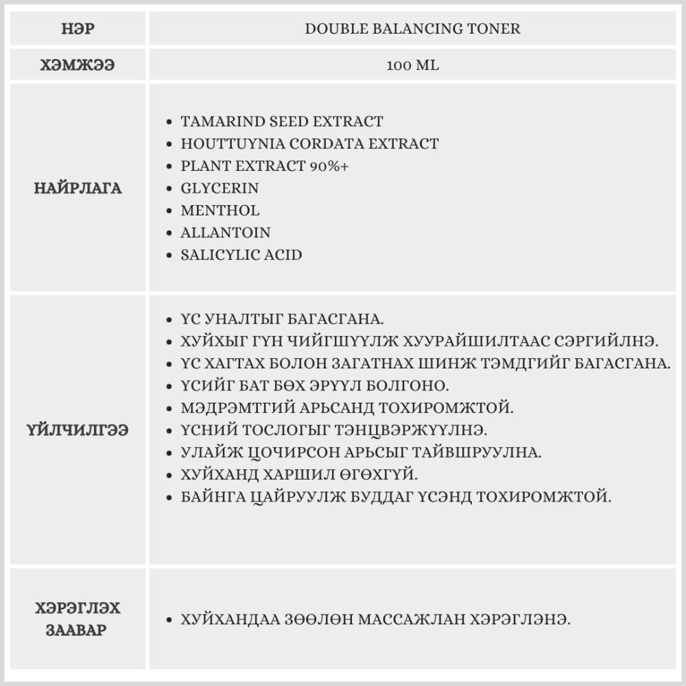 DOUBLE BALANCING TONER / ХУЙХНЫ ТОНИК /