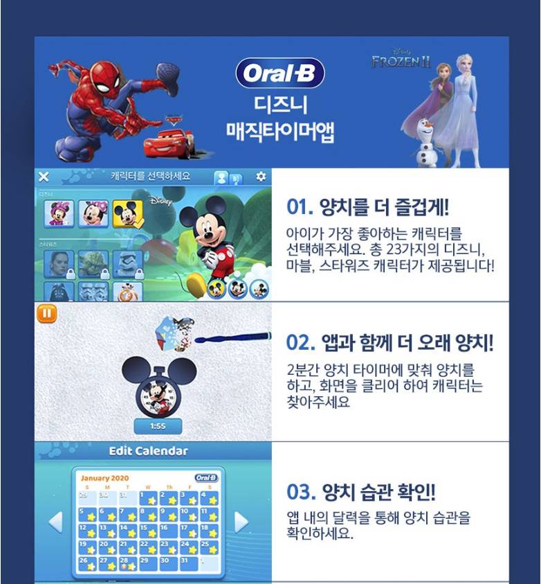 Frozen хүүхэлдэйн баатрын зурагтай, хүүхдэд зориулсан автомат шүдний сойз. Уян харимхай, дугуй хэлбэрийн үстэй тул хүүхдийг шүд, буйлыг цочроохгүйгээр амны хөндийг цэвэрхэн болгоно. 3-с дээш насныхан хэрэглэх боломжтой ба хүүхдийн шүдэнд тохирсон жижиг хэмжээтэй.