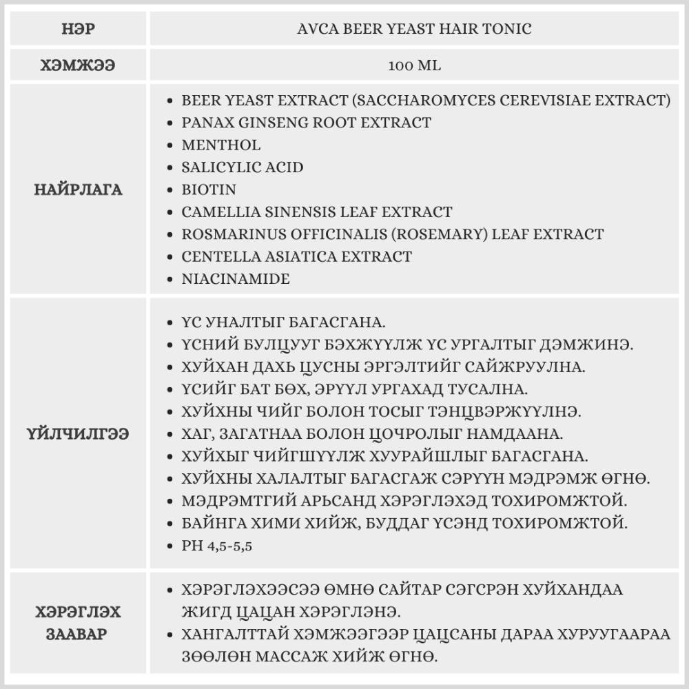 AVCA BEER YEAST HAIR TONIC / ХУЙХНЫ ТОНИК /