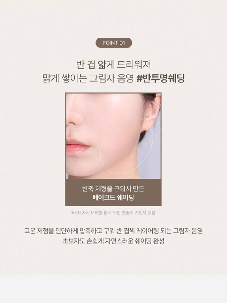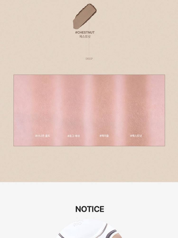 Уг сүүдэр нь түрхсэний дараа барзайдаггүй.Хэт тод биш арьсанд байгалийн мэт сүүдэр гаргадгаараа онцлогтой. Гаралт маш сайн бөгөөд авч явахад авсаархан.