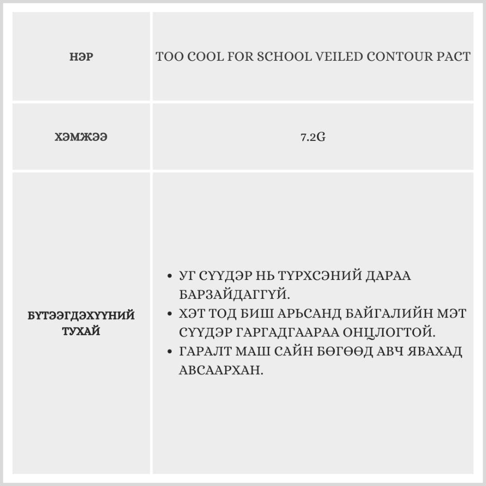 Too Cool For School Veiled Contour Pact /Сүүдэр/