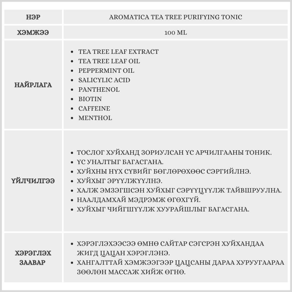 AROMATICA TEA TREE PURIFYING TONIC / ХУЙХНЫ ТОНИК /