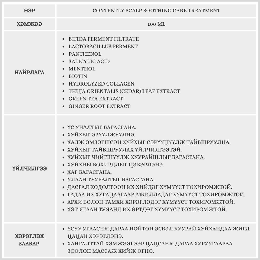 CONTENTLY SCALP SOOTHING CARE TREATMENT / ХУЙХНЫ ТОНИК /