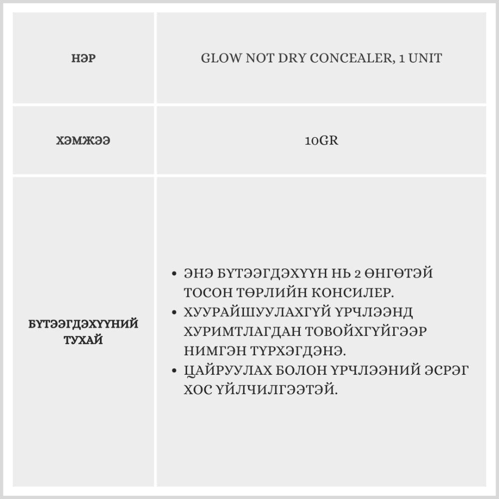 Glow Not Dry Concealer /Өө дарагч/