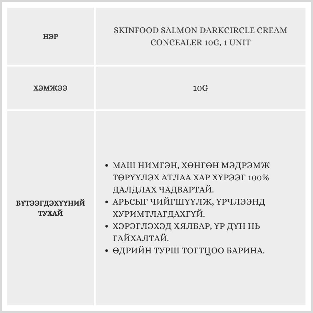Skinfood Salmon Darkcircle Cream Concealer 10g, 1 unit /Өө дарагч/