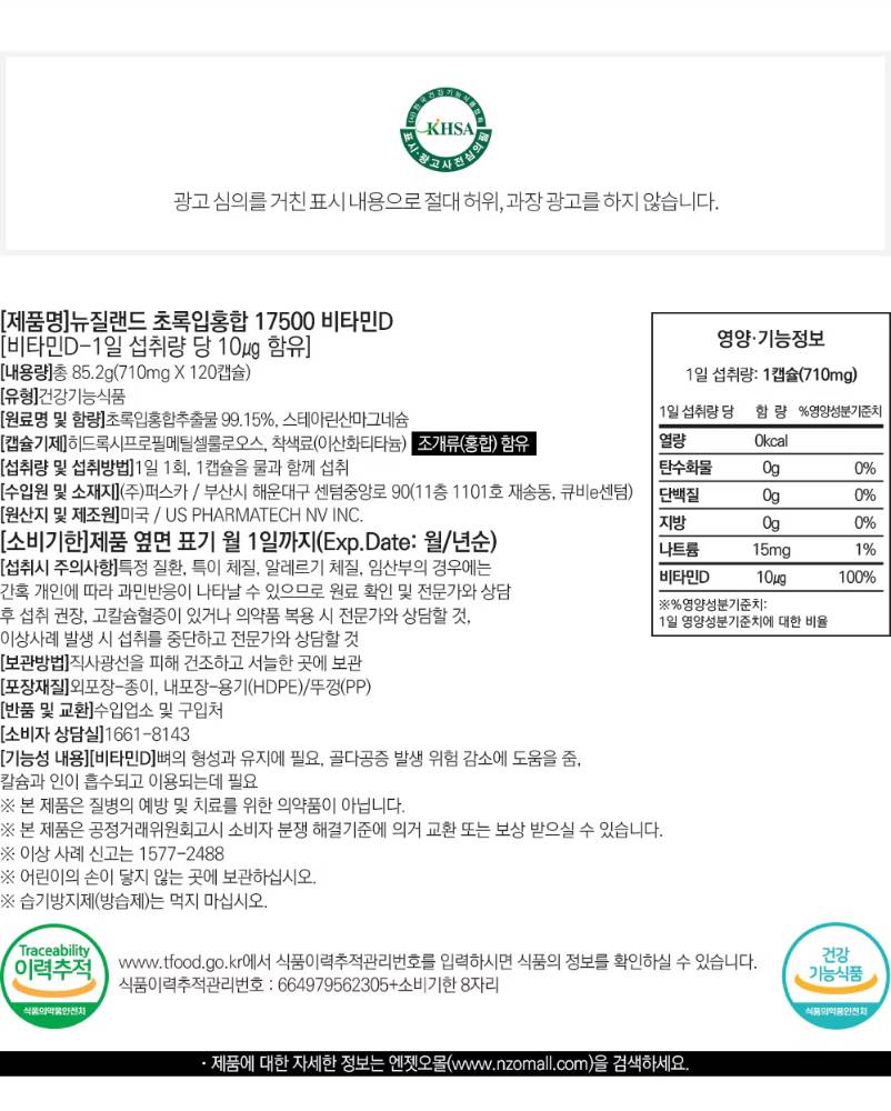 NZ Origin New Zealand Green Lipped Mussel 17500 Vitamin D /CO/