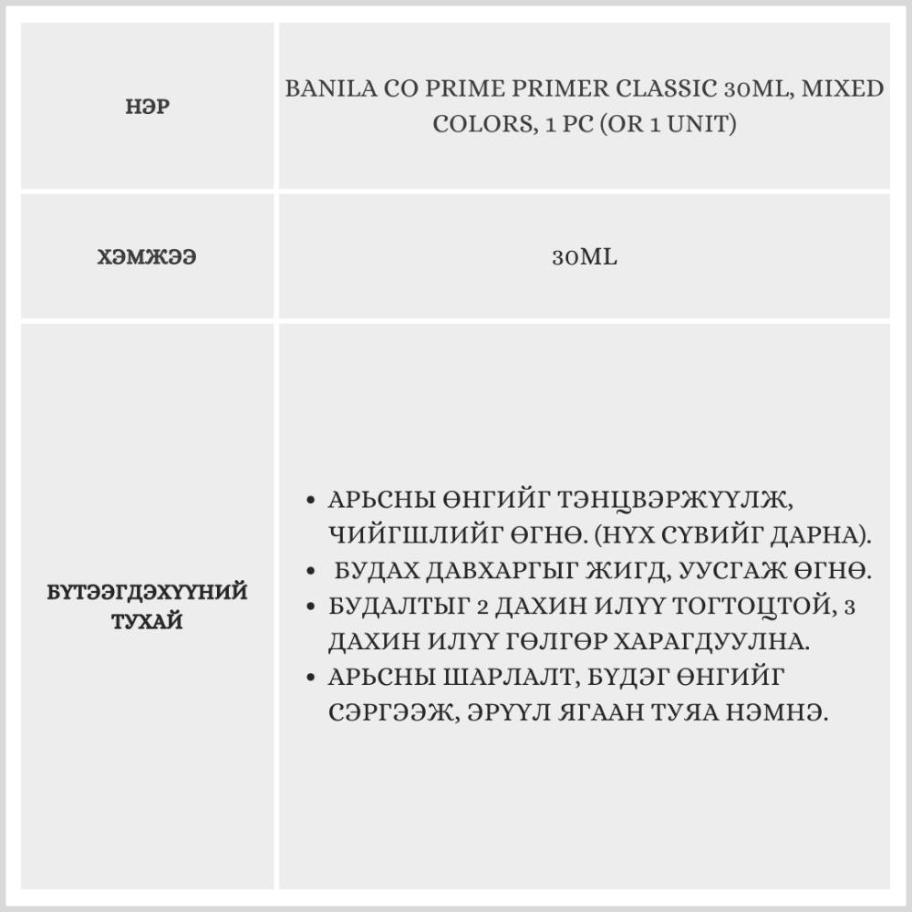 Banila Co Prime Primer Classic 30ml, Mixed Colors, 1 pc (or 1 Unit)