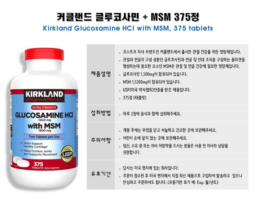 KIRKLAND Glucosamine + MSM, 375 Tablets (Co)