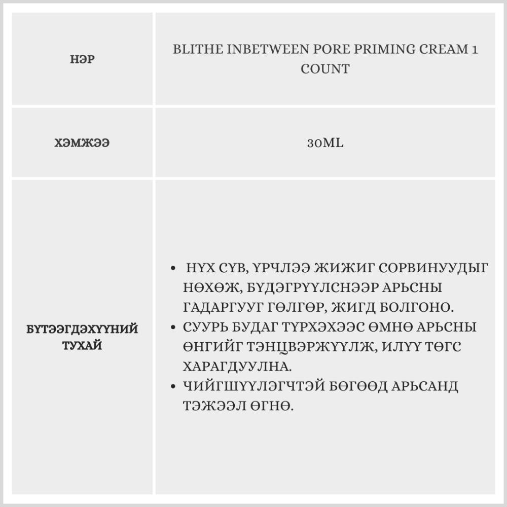 "Blithe Inbetween Pore Priming Cream 30ml, 1 pc (or 1 Unit)"