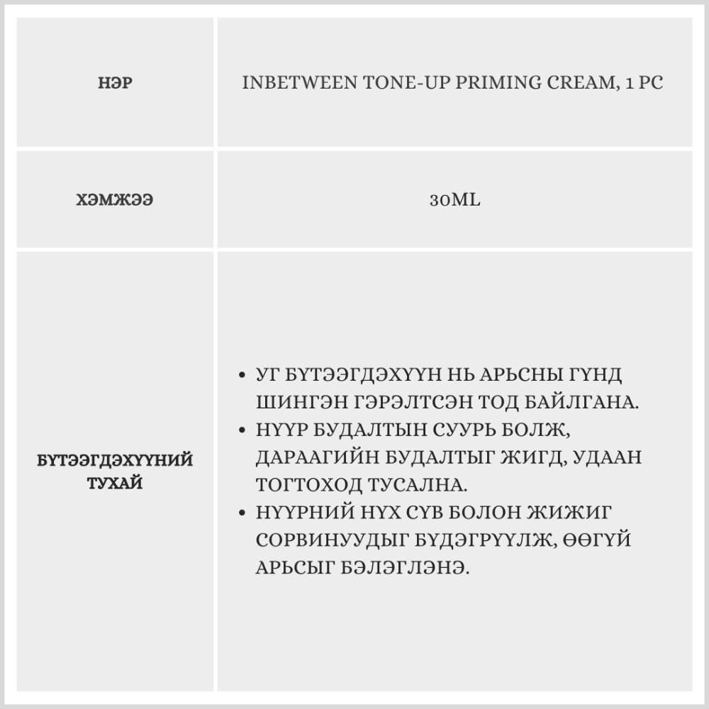 Уг бүтээгдэхүүн нь арьсыг толигор болгон арьсны нүх сүвийг даран нүүр будалтыг удаан тогтоох суурь болно.