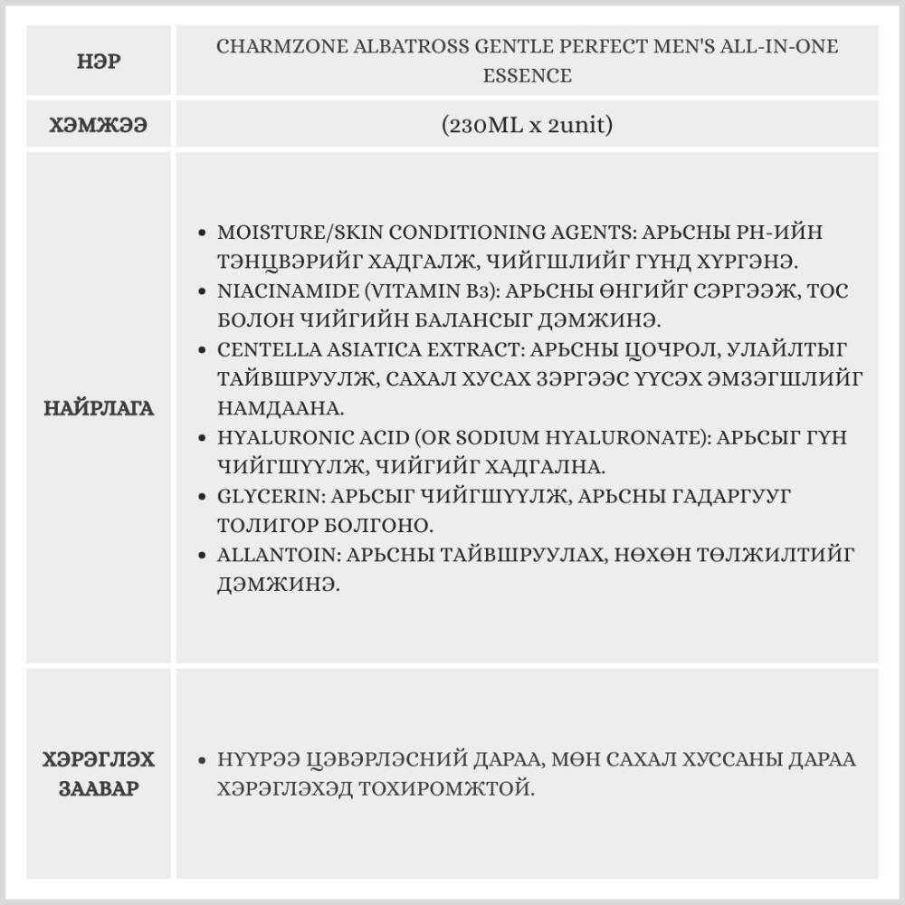 Charmzone Albatross Gentle Perfect Men's All-in-One Essence 1 unit /эрэгтэй гоо сайхан/