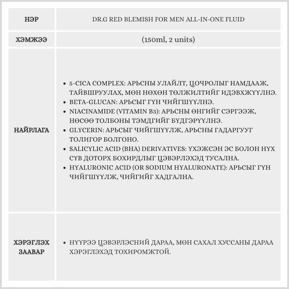 Dr.G Red Blemish for Men All-in-One Fluid 150ml, 2 units /эрэгтэй гоо сайхан/