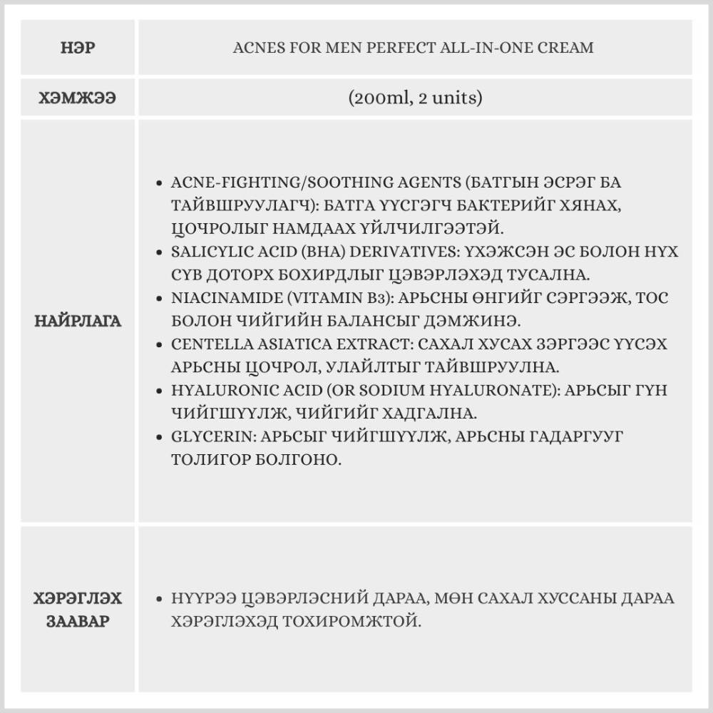 Acnes for Men Perfect All-in-One Cream 200ml, 2 units /эрэгтэй гоо сайхан/