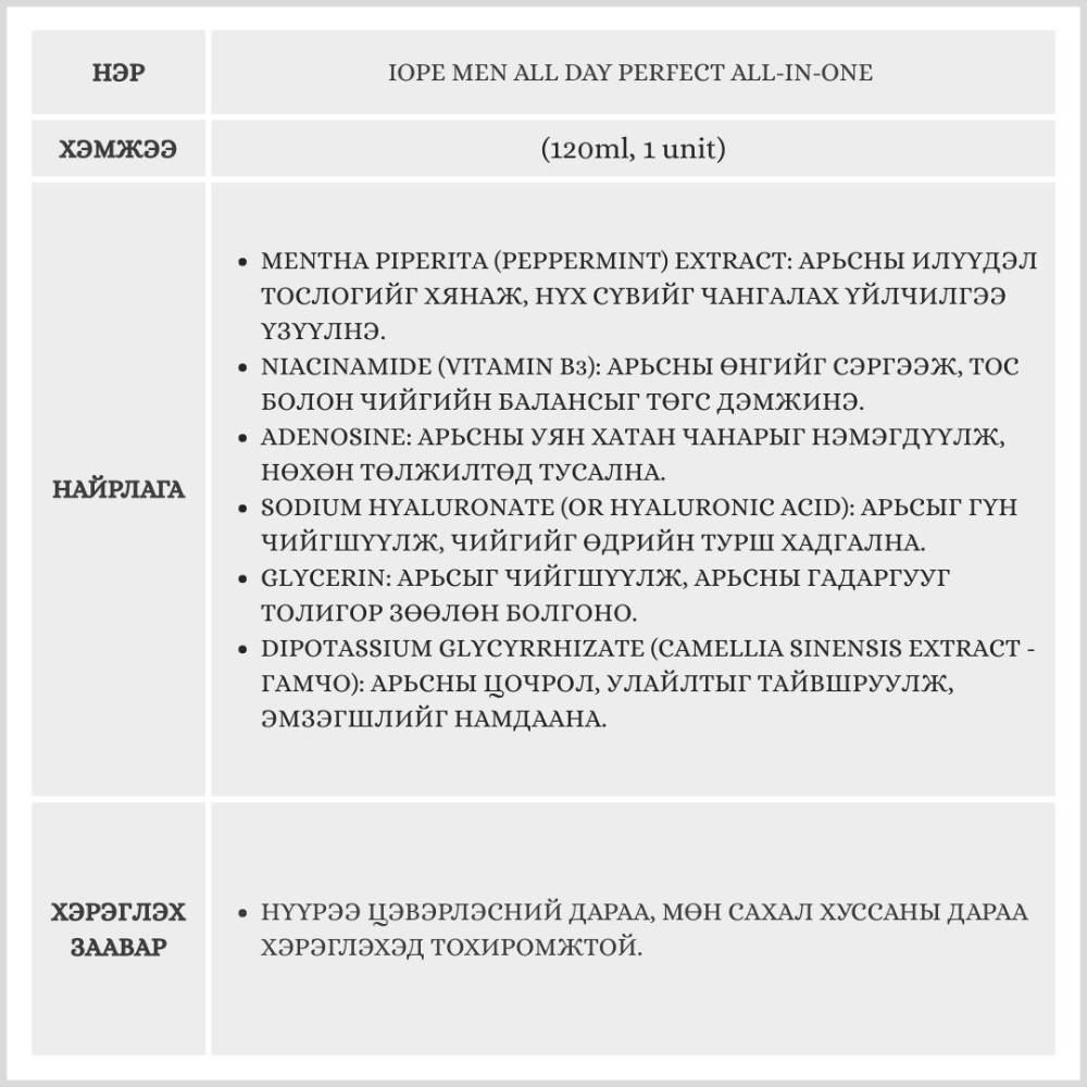IOPE Men All Day Perfect All-in-One 1 unit /эрэгтэй гоо сайхан/