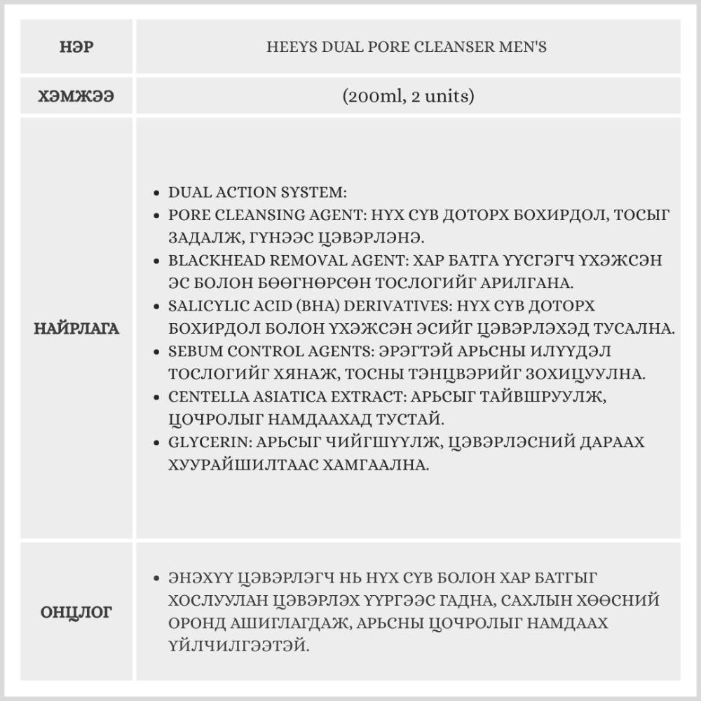 Heeys Dual Pore Cleanser Men's 200ml, 2 units /эрэгтэй нүүр цэвэрлэгч/