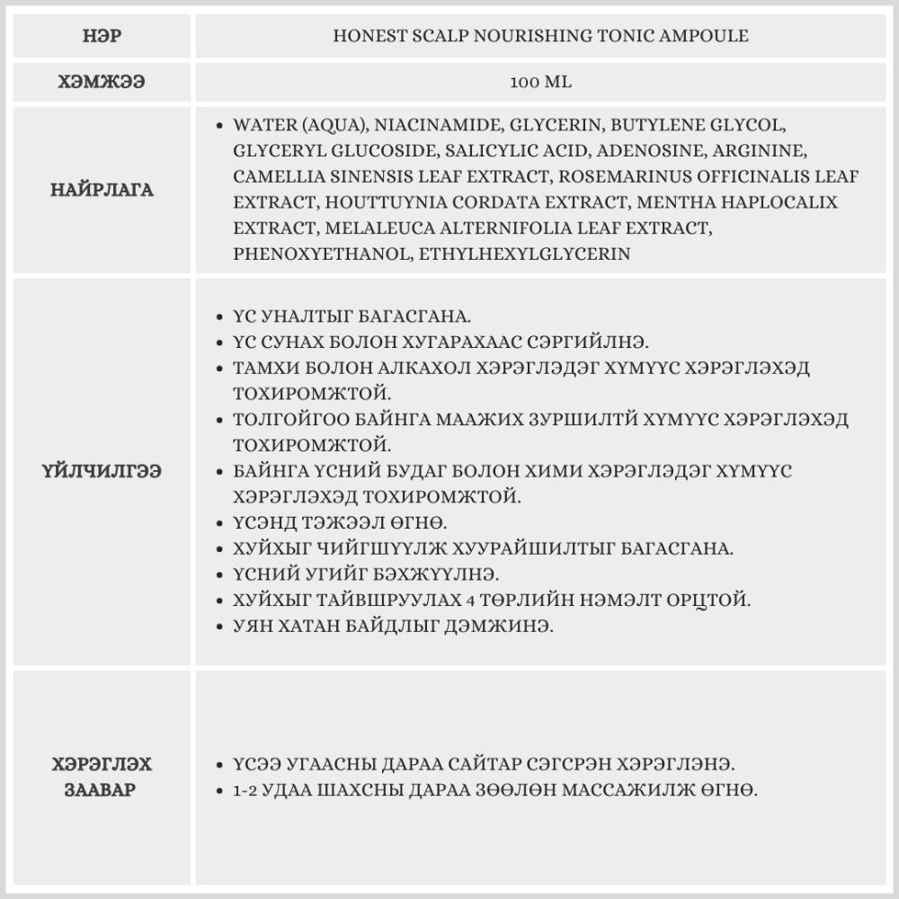 HONEST SCALP NOURISHING TONIC AMPOULE / ҮСНИЙ АМПУЛЬ /