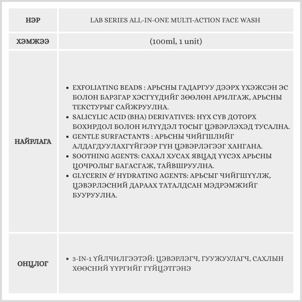 LAB SERIES All-in-One Multi-Action Face Wash 100ml /эрэгтэй нүүр цэвэрлэгч/
