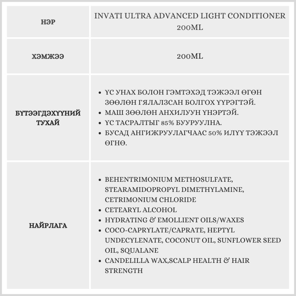 Invati Ultra Advanced Light Conditioner 200ml /Ангижруулагч/