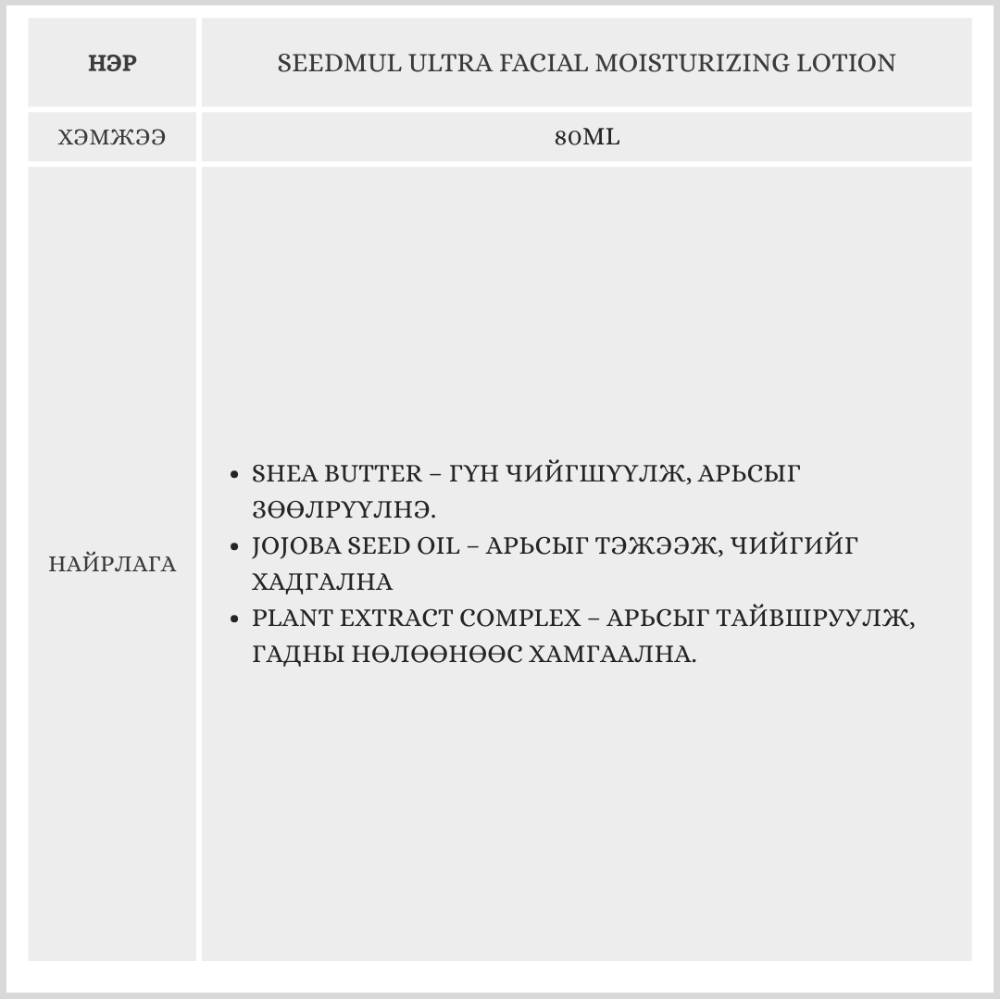 SEEDMUL ULTRA FACIAL MOISTURIZING LOTION, 80ML / Нүүрний арьс арчилгаа /