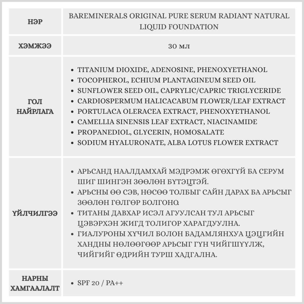 bareMinerals Original Pure Serum Radiant Natural Liquid Foundation, 30ml