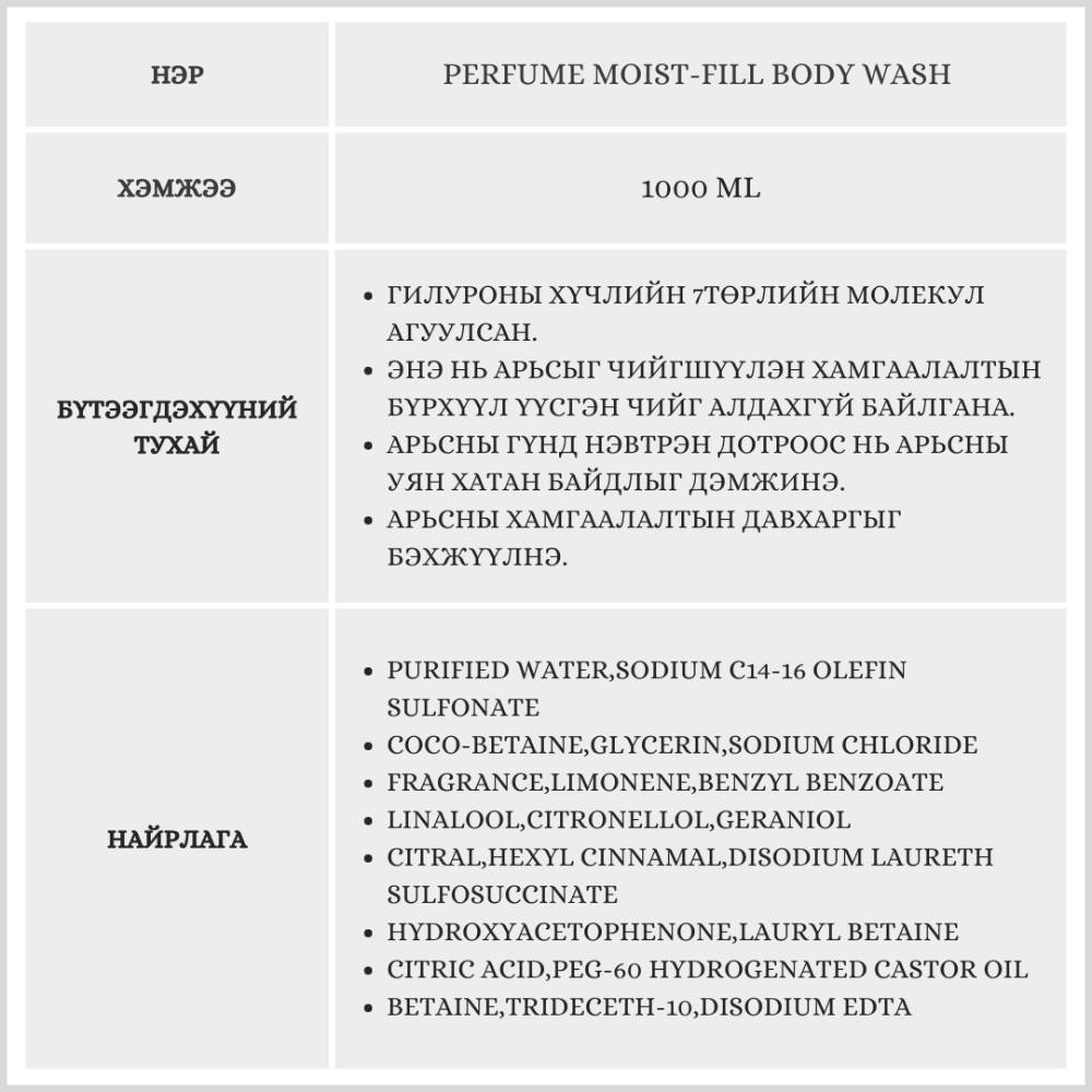 Perfume Moist-Fill Body Wash 1000 ml /Биеийн шингэн саван/