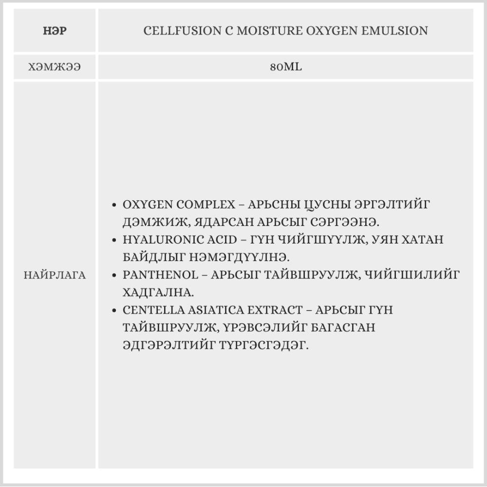 CELLFUSION C MOISTURE OXYGEN EMULSION, 80ML / Нүүрний арьс арчилгаа /