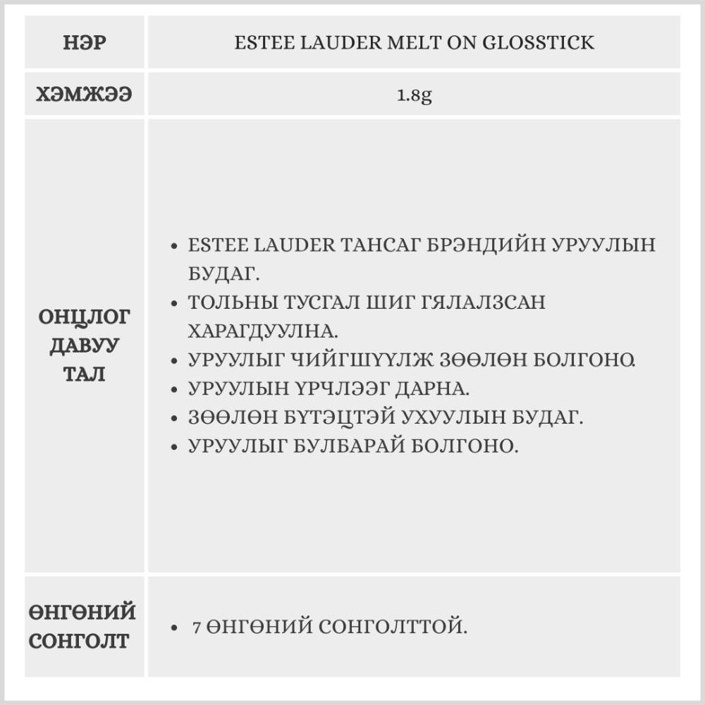 ESTEE LAUDER MELT ON GLOSSTICK / УРУУЛЫН БУДАГ /