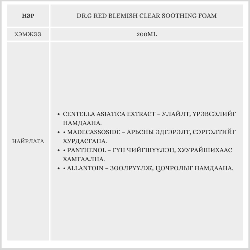 DR.G RED BLEMISH CLEAR SOOTHING FOAM, 200ML / НҮҮР ЦЭВЭРЛЭГЧ /
