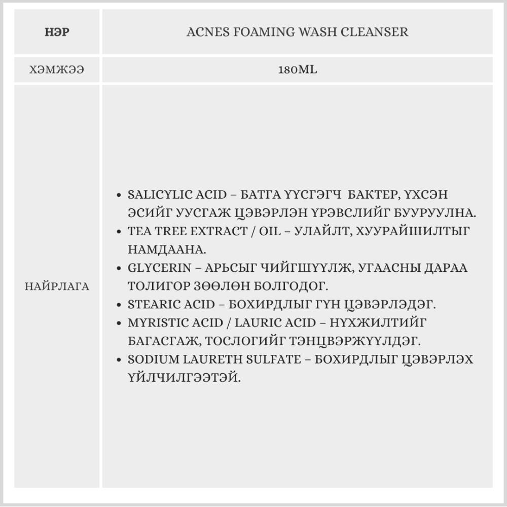 ACNES FOAMING WASH CLEANSER, 180ML / НҮҮР ЦЭВЭРЛЭГЧ /