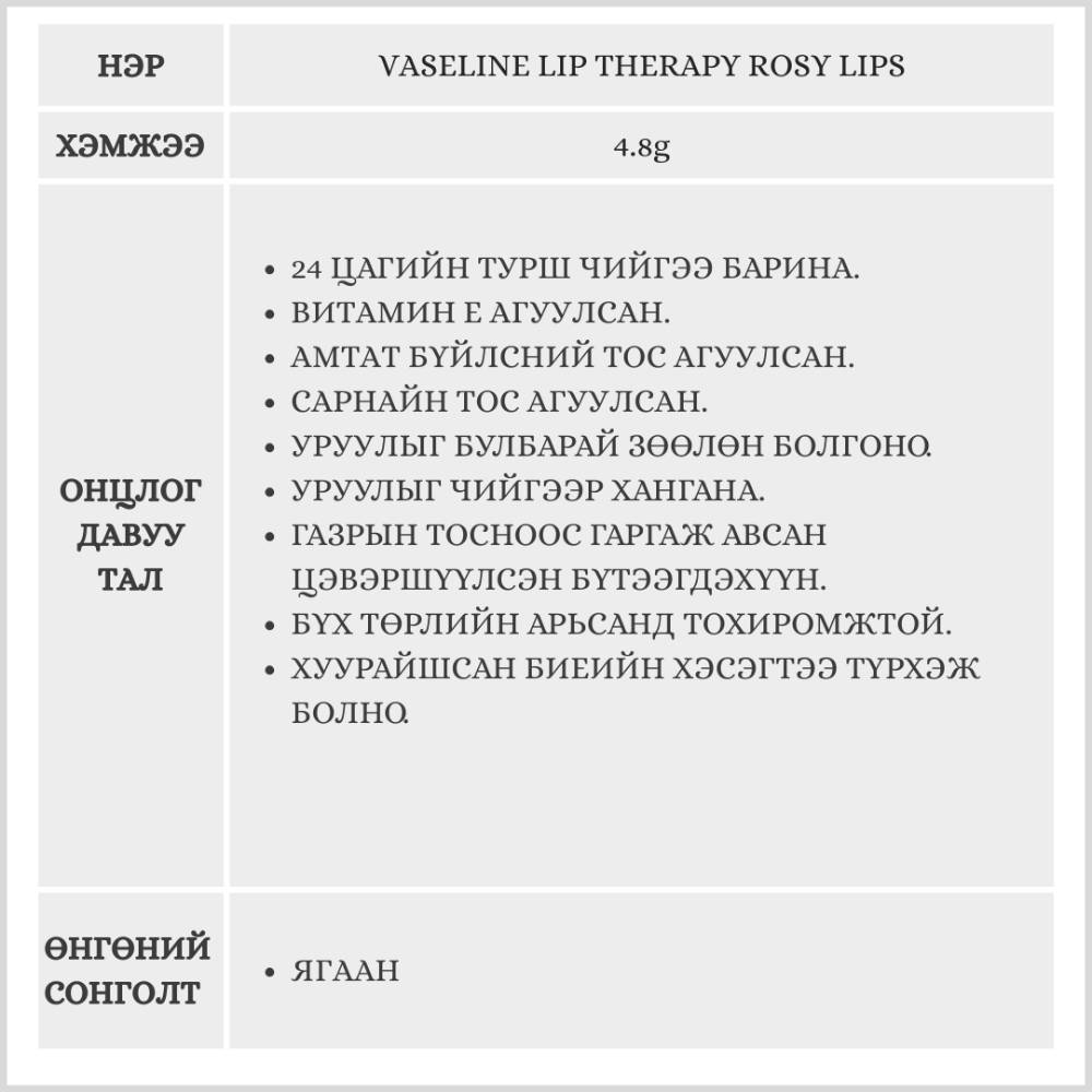 VASELINE LIP THERAPY ROSY LIPS / УРУУЛЫН ВАЗЕЛИН /